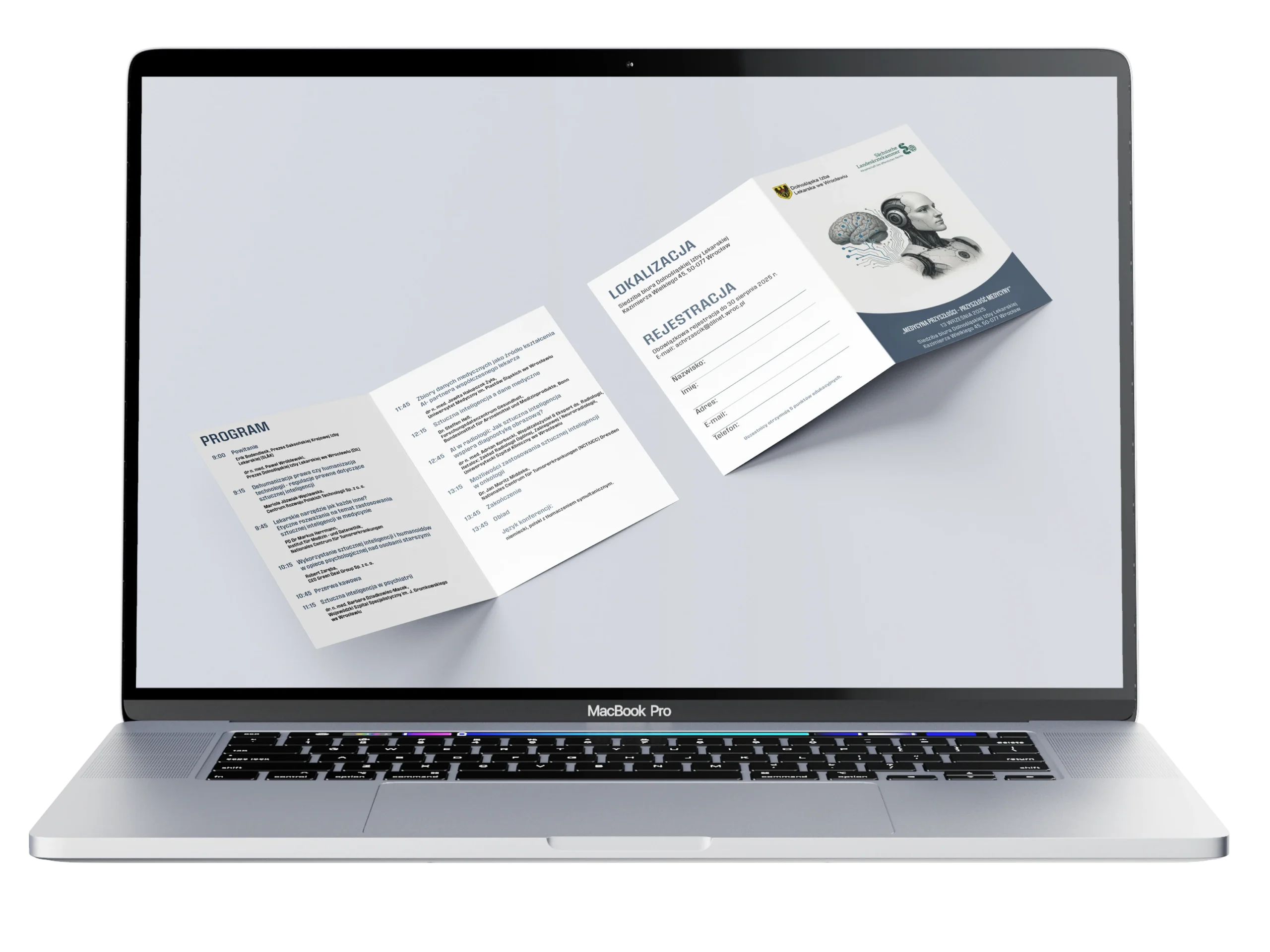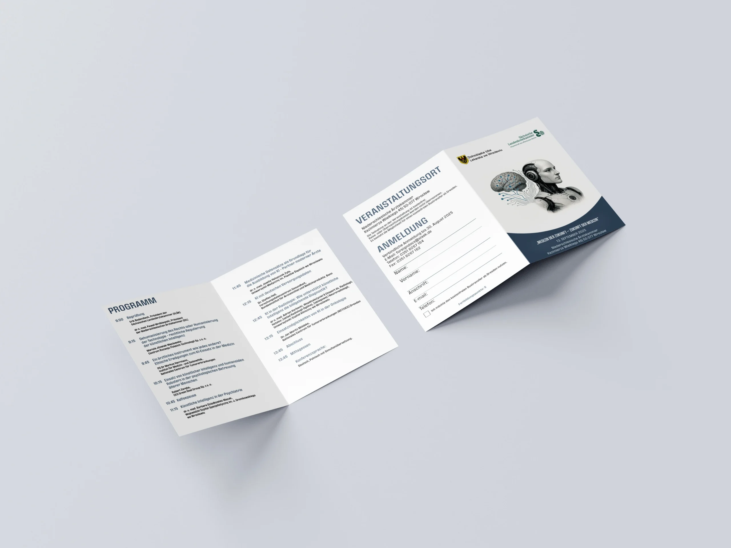 Celem było stworzenie ulotek eventowych w wersji Polskiej oraz Niemieckiej o tematyce AI. Po otrzymaniu Loga oraz programu eventu przeszedłem do działania ponieważ zlecenie było „na wczoraj”.